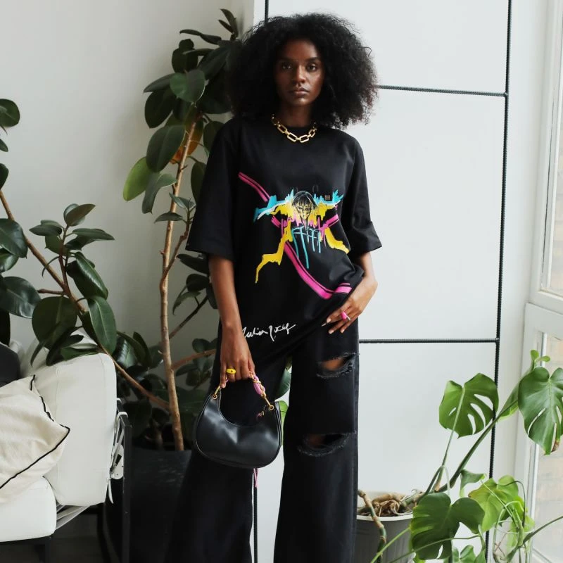 “Tied Heart” x Talia Zoref, is a metaphor of a troubled creative mind, which is central in this collection. The drawing symbolizes the tragedy of a creative mind that is caused by the feeling of being overwhelmed with sources, colors and freedom of creation locked up behind the bars of a wandering mind.