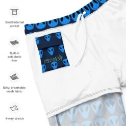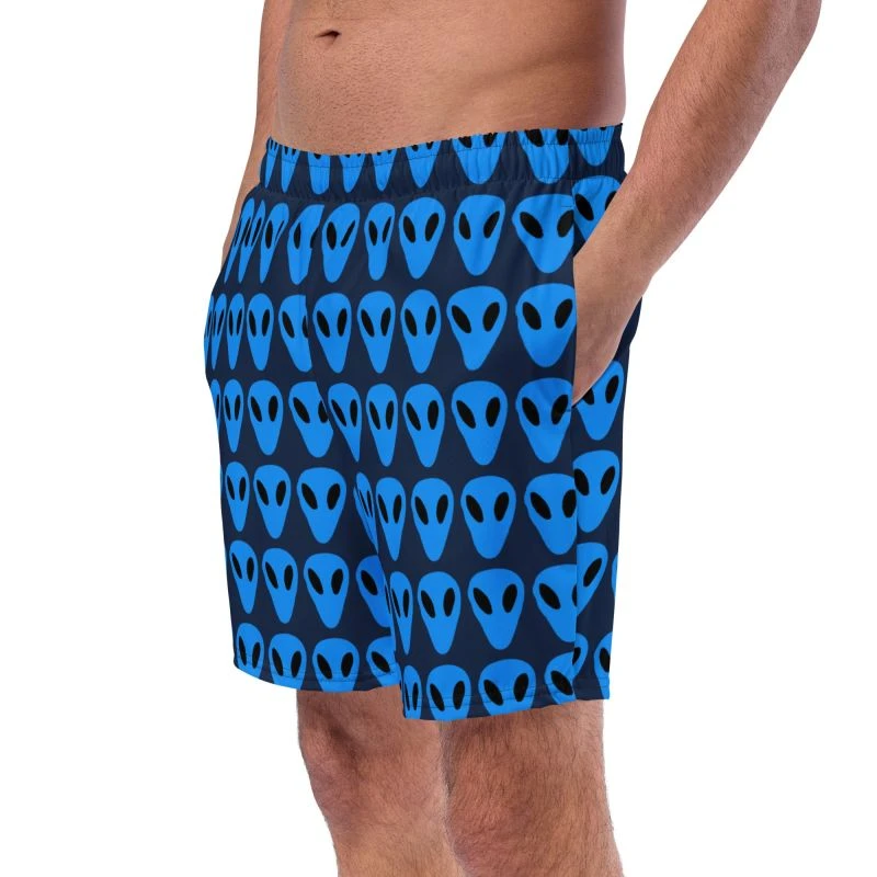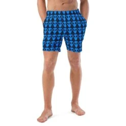 Dive into sustainable style with our eco-conscious Men’s Swim Trunks, designed to make a splash while caring for the planet. These swim trunks feature a captivating repeat pattern of blue alien faces, adding a touch of playfulness and uniqueness to your swimwear collection. Get ready to make a statement at the beach or pool while showing your commitment to eco-friendly fashion.