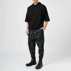 Camouflage rough cotton joggers featuring a drawstring-waist and elastic waistband can easily fit in between sizes, side pockets and elastic edges.