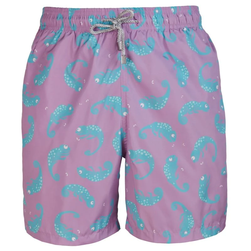 -Lilac Men’s Swim Shorts with a chameleon print pattern