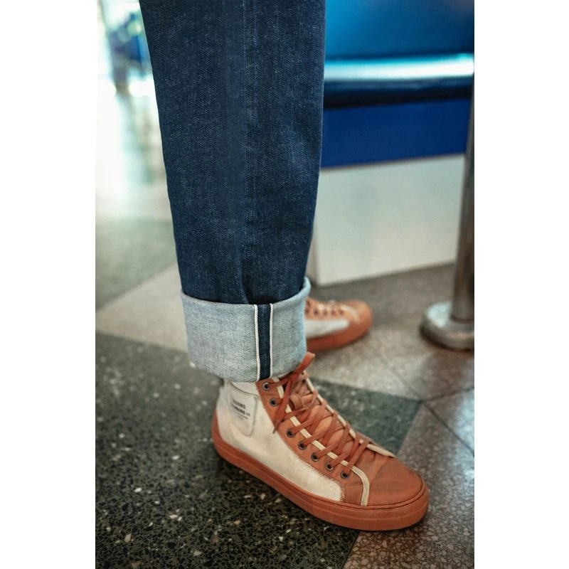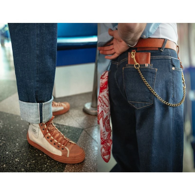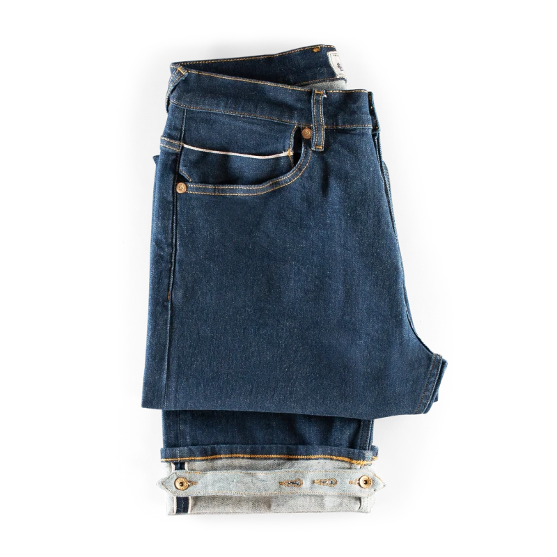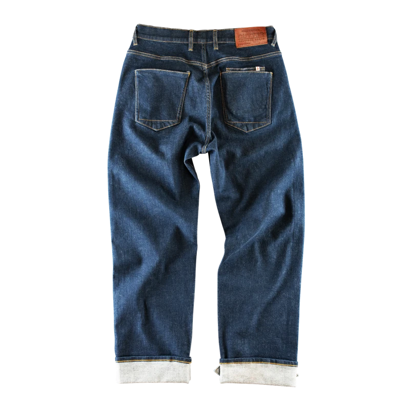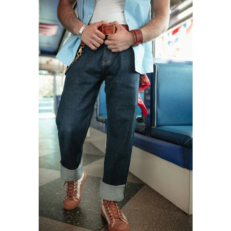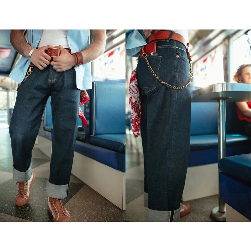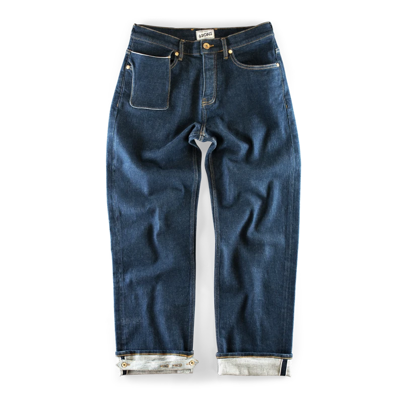 The Cutter Jean is one of our most sustainable selvedge denim styles yet. With a 1950s-inspired, heritage fit, these indigo jean features a unique bootstrap adjuster on the leg opening and our &SONS signature chore pocket. Made with 99% organic cotton with 1% stretch for comfort, these jeans have wide, straight-cut legs and sit on the waist. We have used recycled polyester thread and recycled polyester labels and the back patch is chrome-free tanned leather meaning no harmful chemicals were used in the processing. Due to the light washing process, this jean has a low environmental impact making them a good choice for your next wardrobe investment.