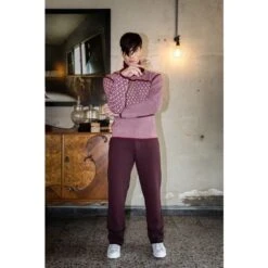 These knit straight leg trousers are comfy and easy to wear. Using a new woven playful pattern the knit pants with front slash pockets are fitted with an elasticated waistband.