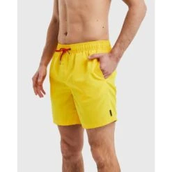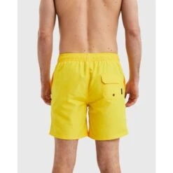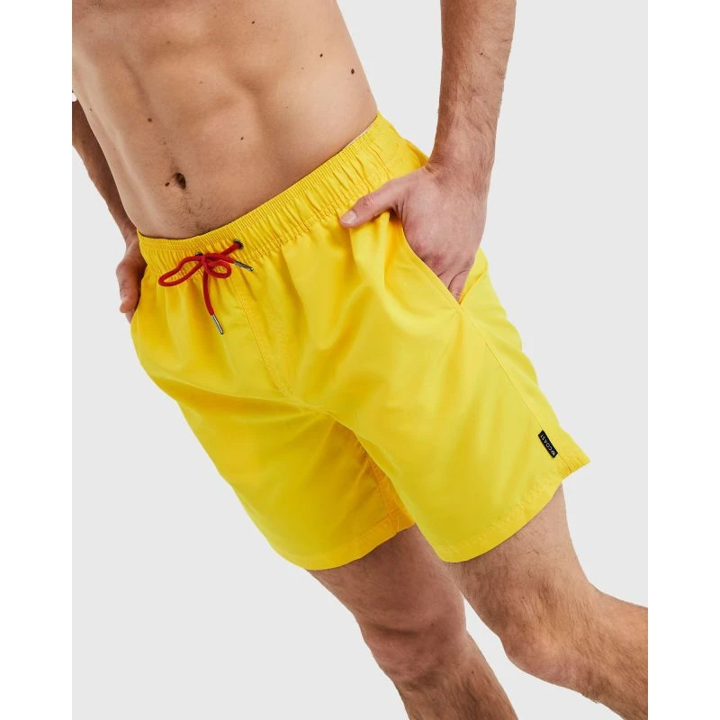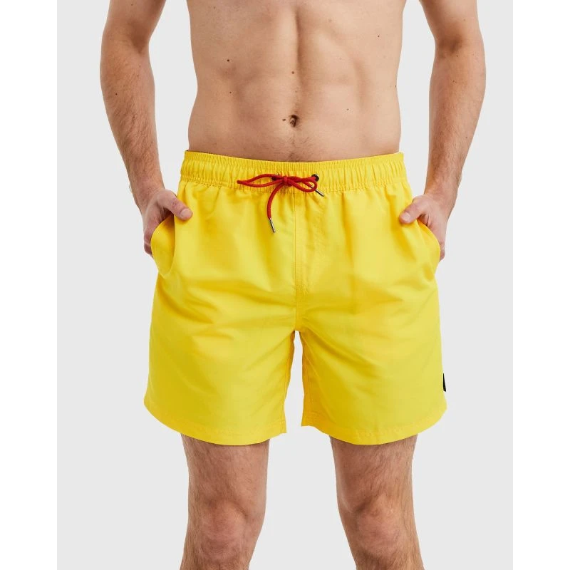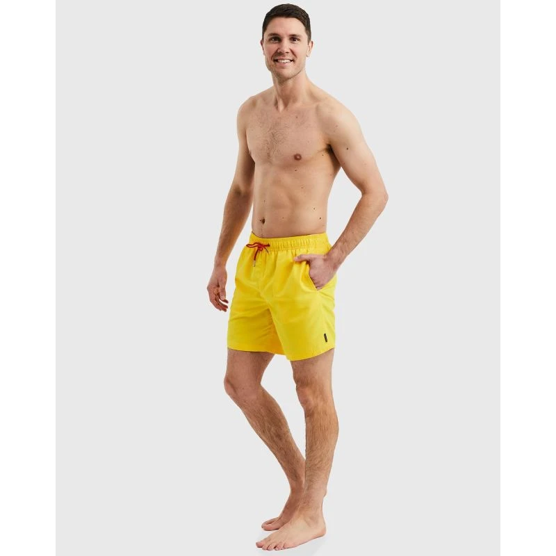 Coast Clothing Essential Swim shorts in Yellow are made from recycled polyester. They are quick-drying and have a UPF 50+ rating, making them perfect for days spent in the sun. Coast Clothing is committed to sustainable practices, which is why these swim shorts are made from recycled materials. So not only will you look great in them, but you’ll also be doing your part to help the environment!-Length: 42cm (Size M)-Regular Fit-REPREVE Recycled Fabrication-Non-stretch fabric, unlined-Solid Yellow colour-Fully elasticated waistband-Red drawcord with metal branded tip-Built-in mesh brief-Key loop-Back Velcro patch pocket-Side seam pocket with inner mesh lining-Side seam Coast logo branding-Designed in Australia