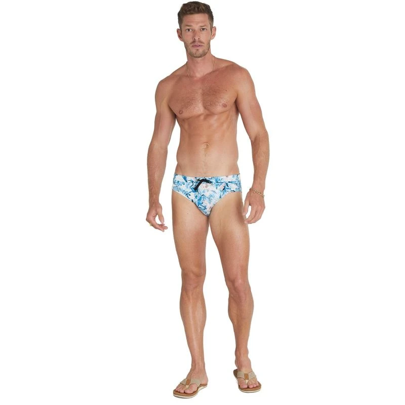 The Everglade Racer Brief by Aqua Blu Australia features a draw cord, elastic waistband and front lining, providing the ultimate fit and function.