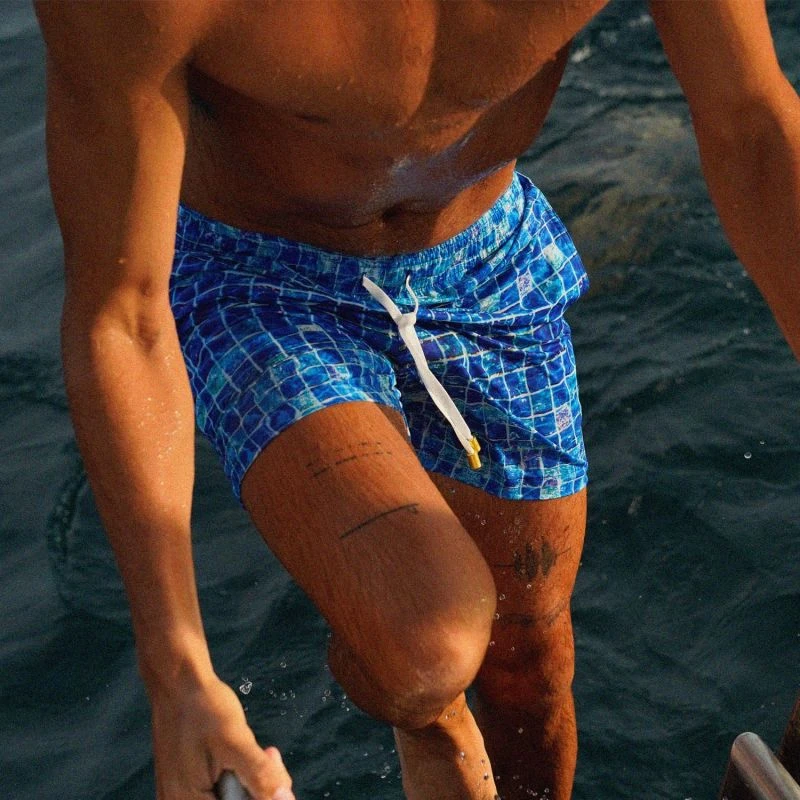 REPREVE® Board shorts with elastic waist and pockets. Drawstring and mesh lining.