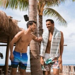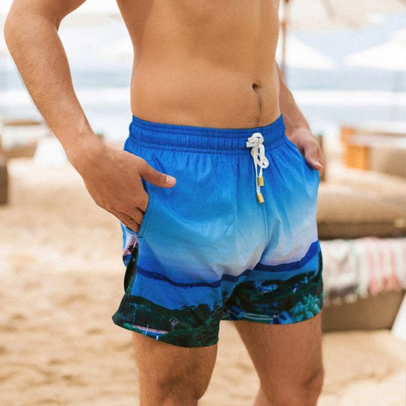 REPREVE® Board shorts with elastic waist and pockets. Drawstring and mesh lining.
