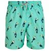 Quick-dry eco-friendly fabric, dark green swim shorts with a grey rhino pattern. Complete with back pocket, elasticated waist, drawstring and soft lining.