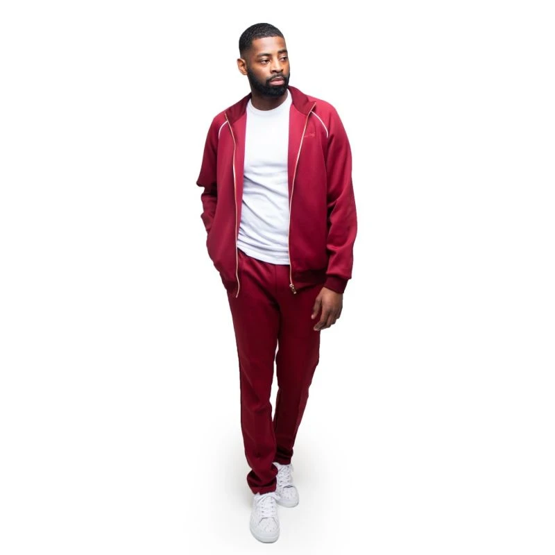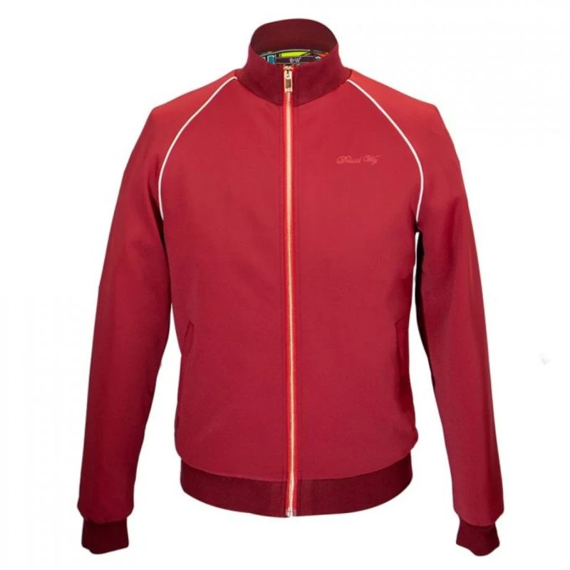 A nice touch-up for a switch in style. Tailored from polyester, it features an iron zip, white stripes, cuffed sleeves, and a cuffed collar with a drawstring trouser.
