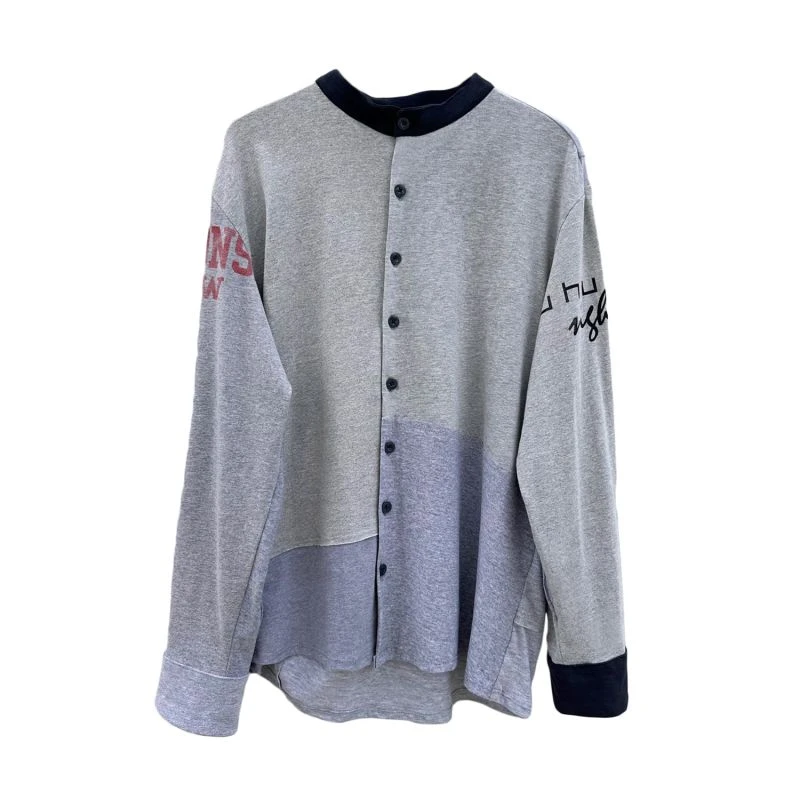 This dress shirt is tailor-made from well selected deconstructed vintage t-shirts from around Oaxaca and New York. This product is one of a kind with eight buttons on front and a comfortable, straight fit. Made with Uhuru and Wisconsin Law T-shirts to name a few. Each product is uni-sex. Honest wear, beauty markings and idiosyncrasies are celebrated.