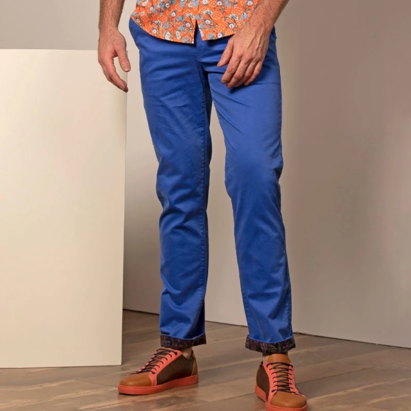 Meet our Jack pants – classic chinos at their best. Made of washed stretch peached sateen cotton – a fancy way of saying these are the softest chinos you will ever own. For an added touch, there is printed floral interior under the cuff.