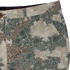Printed flat front short in our Garden Camo khaki pattern. Washed stretch peached cotton short with printed contrast interior.