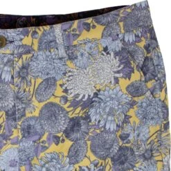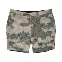 Printed flat front short in our Garden Camo khaki pattern. Washed stretch peached cotton short with printed contrast interior.