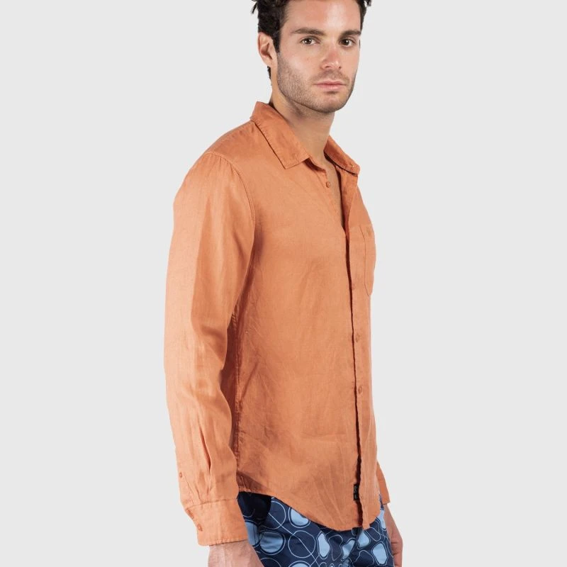 Affordable Linen Clothing AustraliaCasual linen it’s so luxurious and so cool, the Long Sleeve Linen Shirt in Rust by Coast Clothing is a Summer essential and we believe that every stylish Gentleman needs a good linen shirt in his wardrobe. Pair your Coast linen clothing with a bold pair of Coast board shorts for a summer look that will take you from the beach to the bar in little to no time at all. These men’s linen shirts also come in a range of different colors.- Length: 70cm- Straight fit- 100% Linen- Standard collar- Button through front- Single chest pocket; embroidered logo