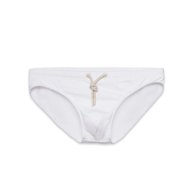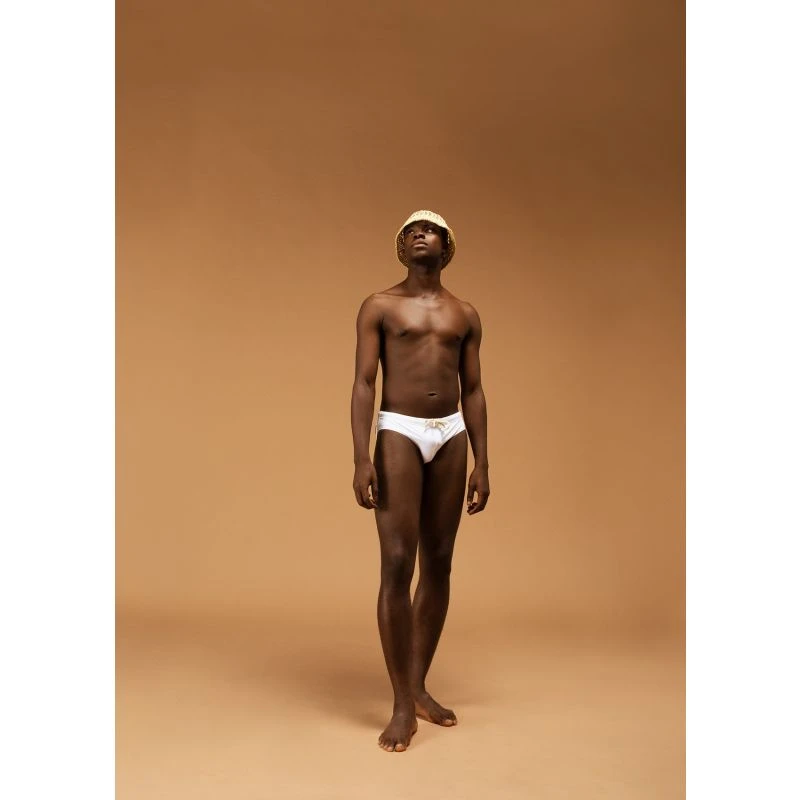 Eco-Friendly Low-Waist Swim Brief features a soft, jersey-knit fabric in solid White color. Designed for a snug, low-waist fit, it’s crafted from ECONYL®, a regenerated nylon fiber made from pre and post-consumer waste such as fishing nets and other nylon waste. Key features include fast drying, a shaped pouch for comfort and support, and an adjustable tubular drawcord with enameled metal ends. Proudly designed and made in Italy, it’s a conscious choice for both style and sustainability.