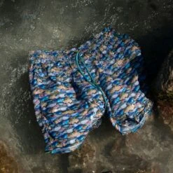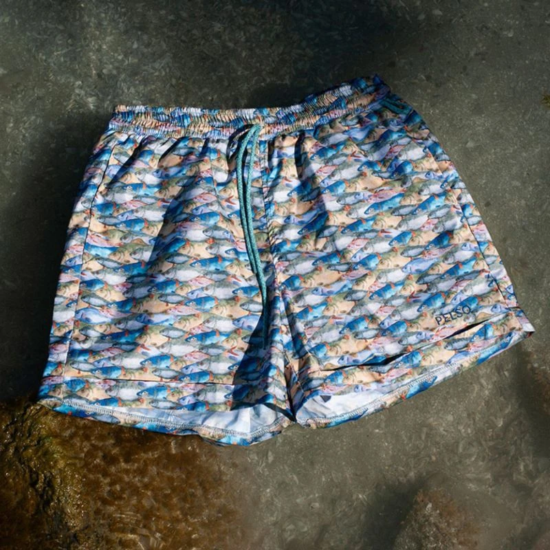 Marcell is resort-wear short with drawstring fastening and two inset pockets on the sides. A comfortable and stylish wear, designed to enjoy every moment whether on holiday or at home. This pair is made from a super lightweight, airy material with a dense fish print throughout. The patterns are hand-made watercolor paintings, which appears on the short in a digitalised format. The prints are inspired by the freshwater fish (carp and bream) of Lake Balaton.