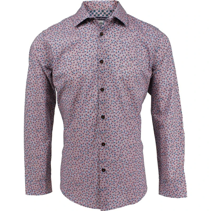 The Nigel shirt has a modified spread collar with a tailored fit. It is 100% cotton with added stretch and a silky hand finish. This option is printed in a lilac poppies pattern.