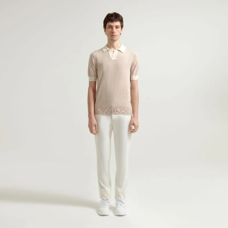 Obi is a great addition to your summer wardrobe, it is knitted in a breathable blend of merino wool and silk making it ideal for warmer months. Obi features a tailored fit, an open neck contrast collar and cuff and ribbed trimmings.