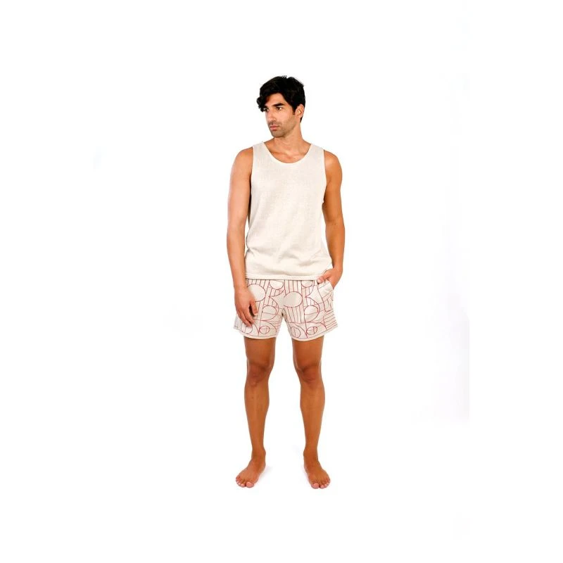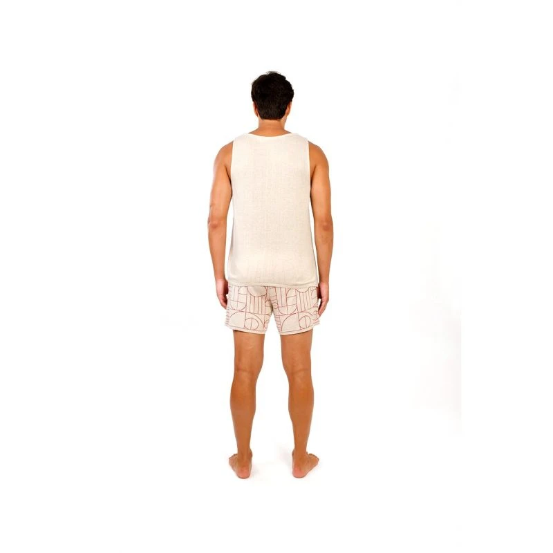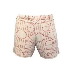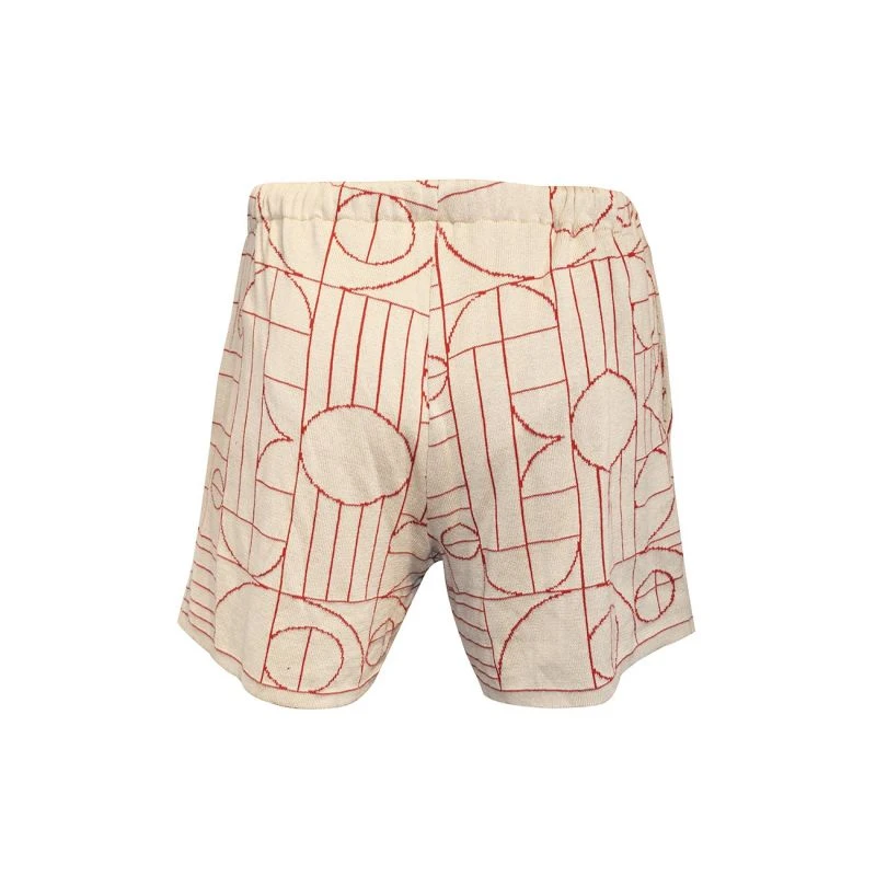 Play Mid shorts are comfy and easy to wear. Using the Maria Aristidou house new woven playful pattern the knit mid shorts with front slash pockets are fitted with an elasticated drawstring waistband.