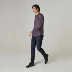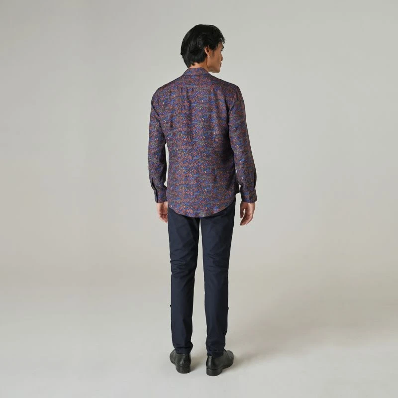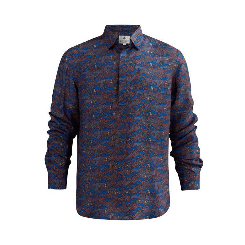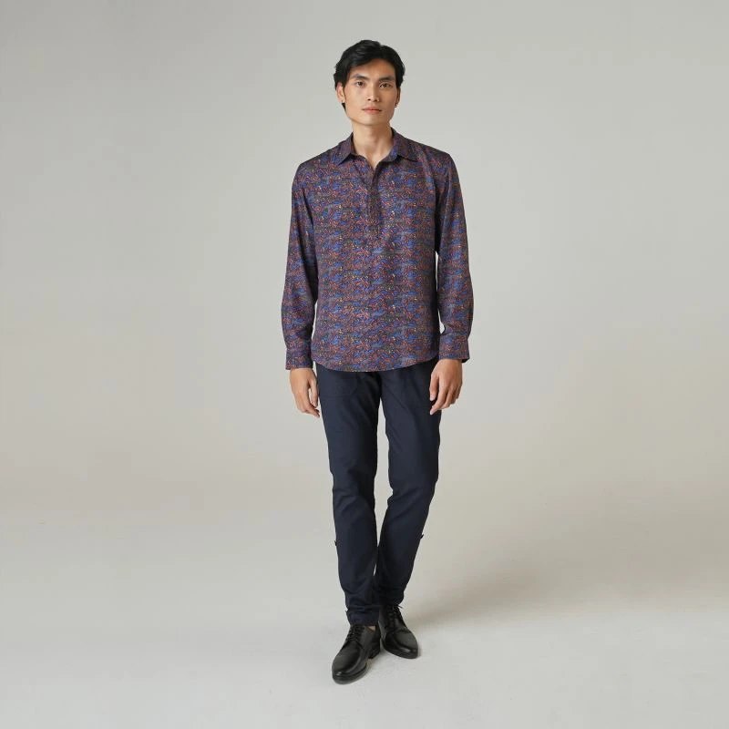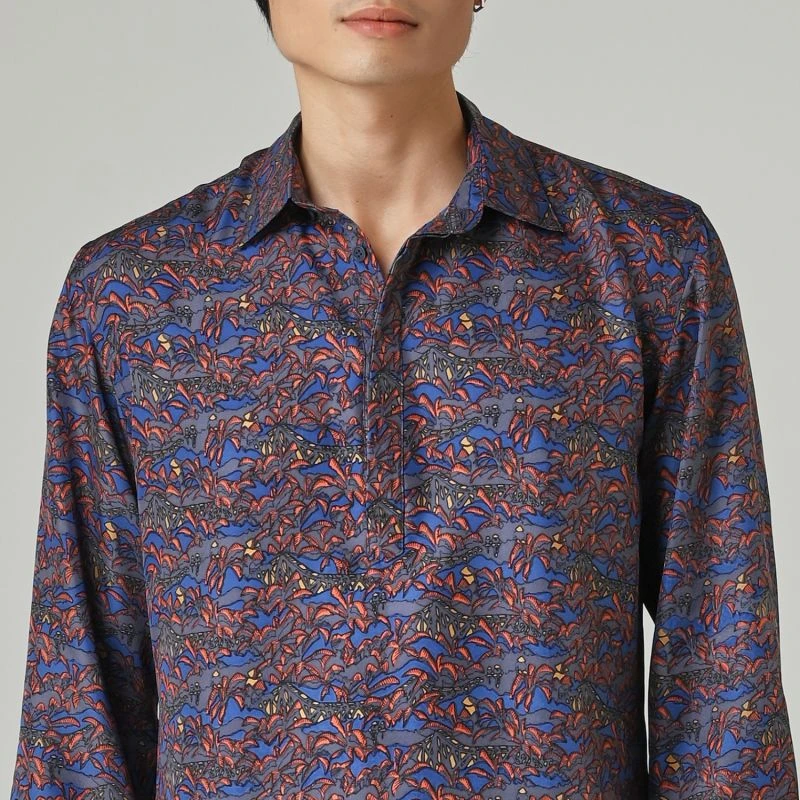 A long-sleeve tunic tailored for a relaxed fit. It features a classic collar, covered half-placket, and a slightly curved hem for a casual yet modern look.