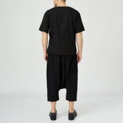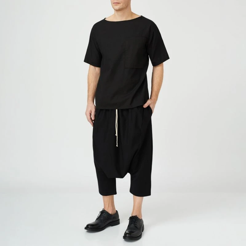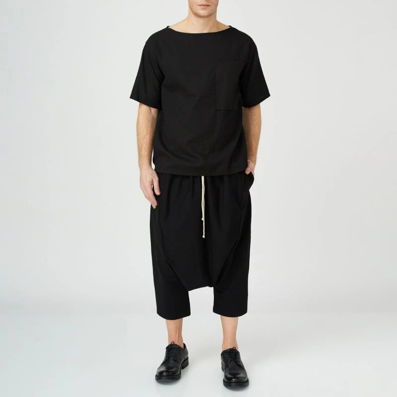 Black cotton stitch T-Shirt featuring stitch pocket detail, design pocket and short sleeve.
