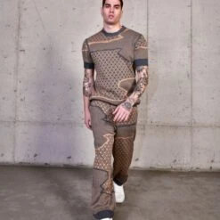 These jogger knit pants from the “The World Topography” Collection are so comfy and easy to wear. They are cut with front slash pockets and a flexible elasticated waistband. Match them with the Valley short sleeve top and the Valley net long sleeve top